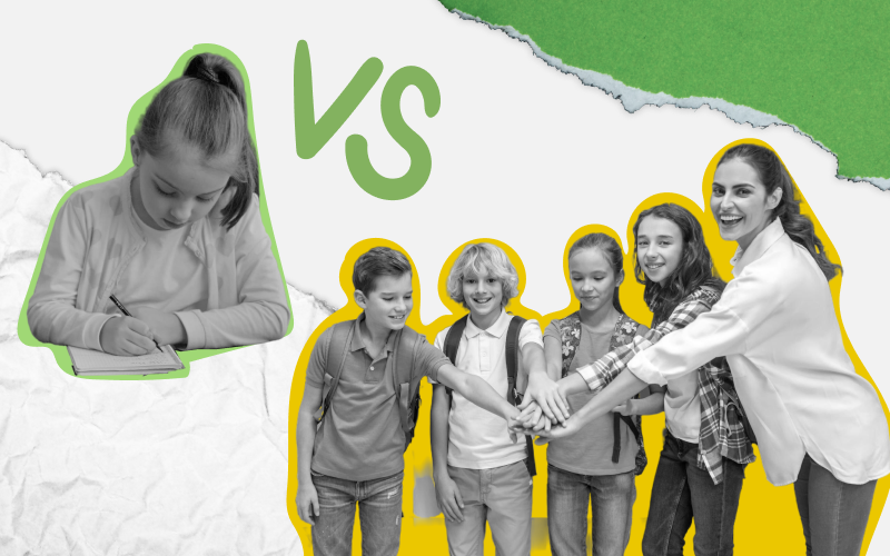 Також варто зазначити, що на груповому навчанні завжди є місце і для індивідуальної роботи. Під час уроку діти виконують персональні завдання, пишуть короткі тексти, працюють над помилками та отримують персональний фідбек від викладача. Навіть у спільних активностях кожен відповідає за свою частину результату. Такий баланс дозволяє поєднати переваги взаємодії з однолітками та увагу до особистого прогресу.