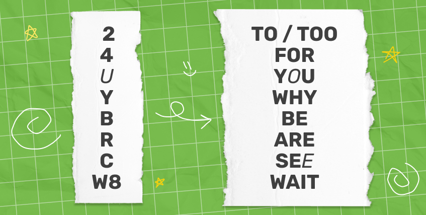 Так, наприклад, просто одна літера або цифра означає ціле слово. Подивимося на популярні англійські інтернет-скорочення у наступній таблиці: