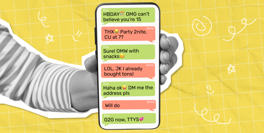 До речі, англійські інтернет-скорочення з’явилися в епоху старих кнопкових телефонів та платних SMS (тільки уявіть, що оплата була за кожне написане слово, lol), як спосіб економити місце та швидше друкувати.
